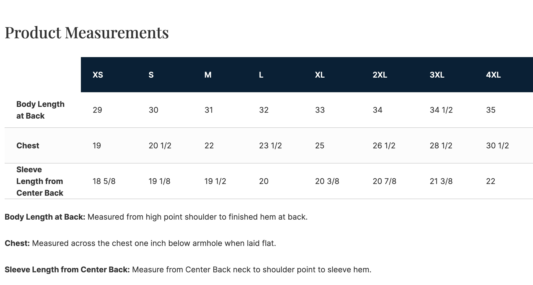 Click to view sizing chart.